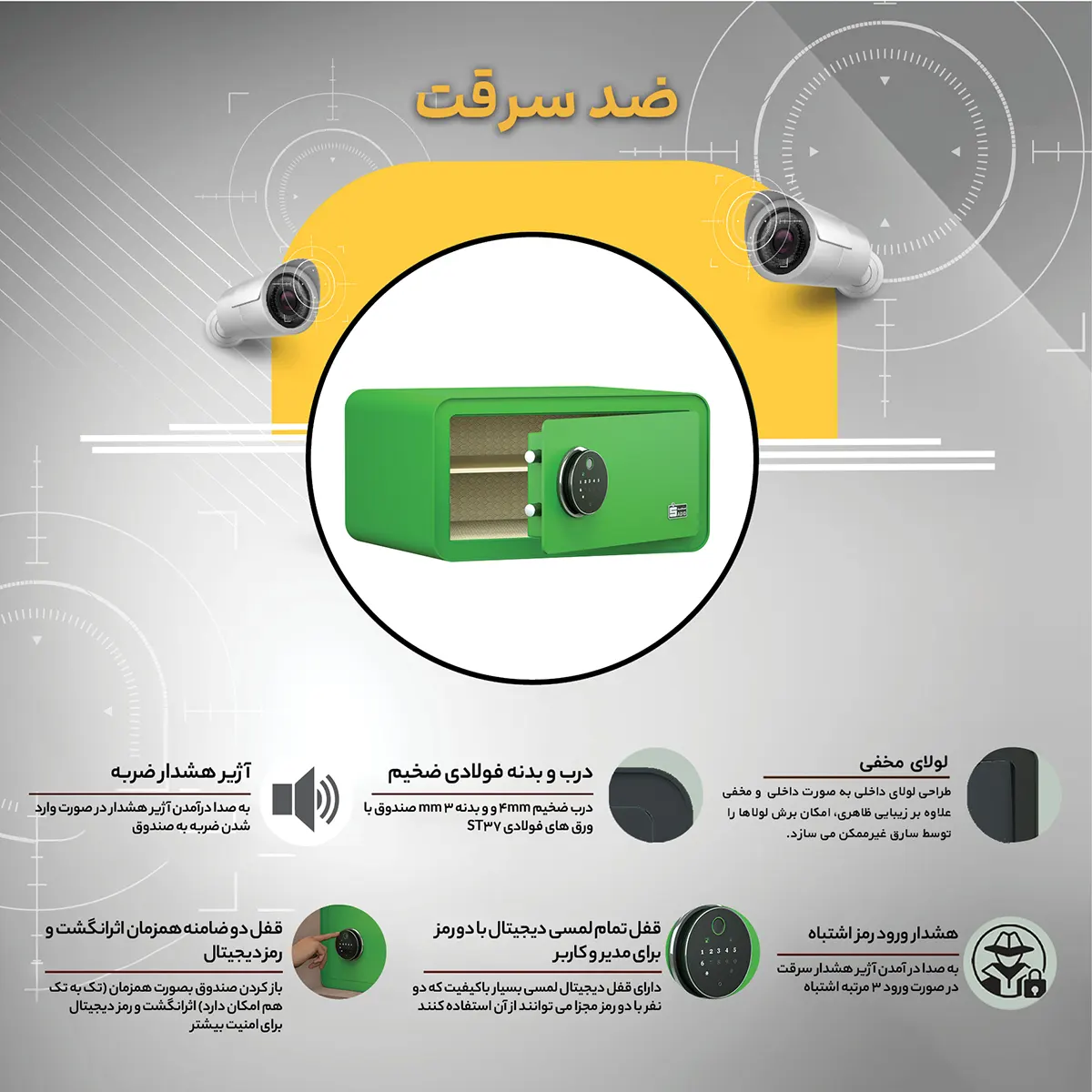 • دارای رمز دیجیتال لمسی اثرانگشتی گویا
